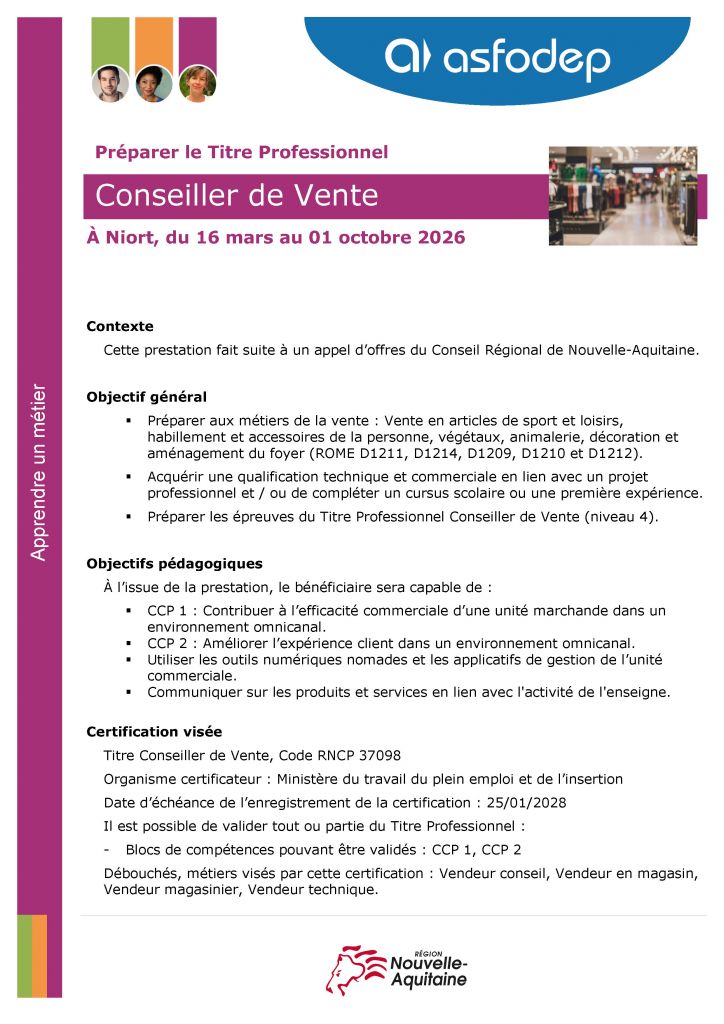 EXERCER UN MÉTIER DE LA VENTE ET DE LA DISTRIBUTION